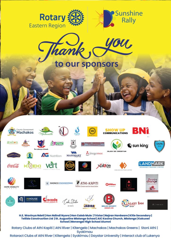 Organised by Rotary clubs in Eastern Kenya under Rotary District 9212, the rally formed part of a nationwide series that had earlier taken place in the Coast, Western, Nairobi, and Mt. Kenya regions. As the fifth and final event in the series, the Eastern Region Sunshine rally served not only as a celebration but also as a strategic advocacy platform to shift public narratives and strengthen visibility for children living with disabilities.